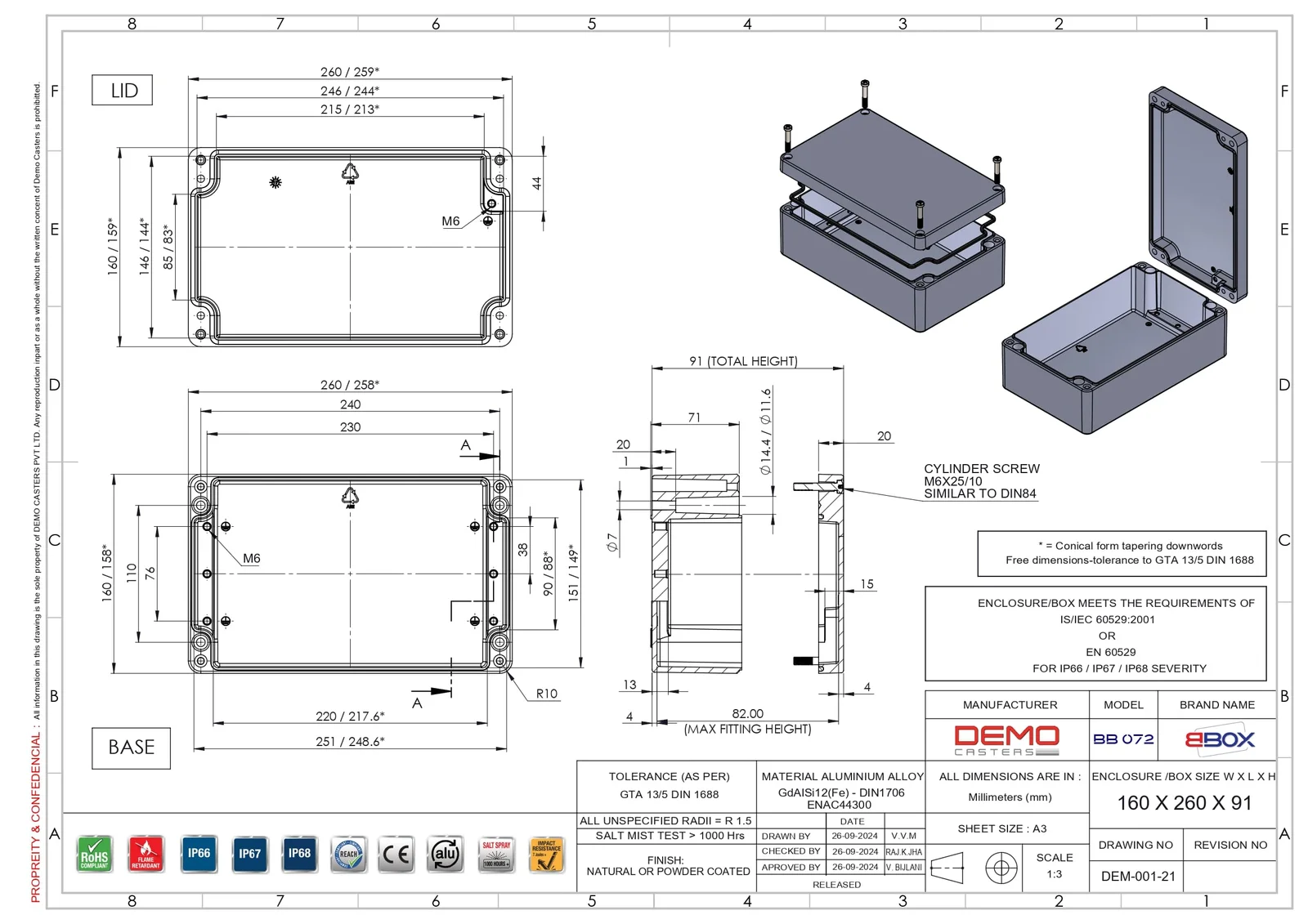 Finish Colour RAL 7001 Silver Grey / RAL 9005 Black / Natural - Uncoated Finish