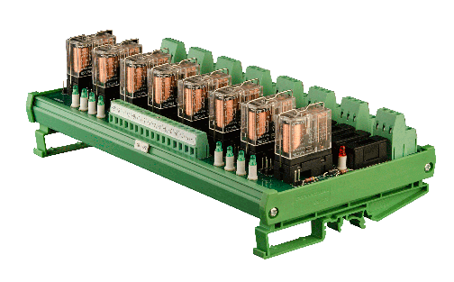 • possibility of Bussing (Jumpering) relays in common negative or common positive configurations.