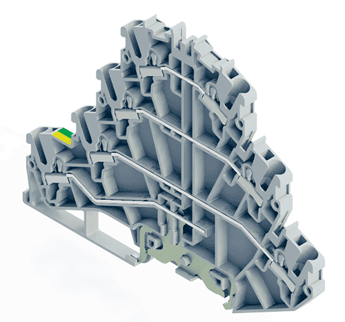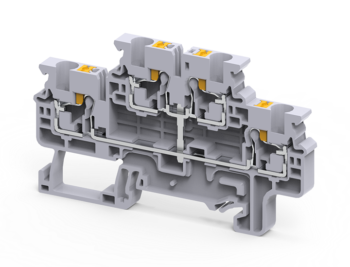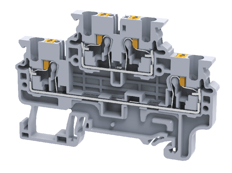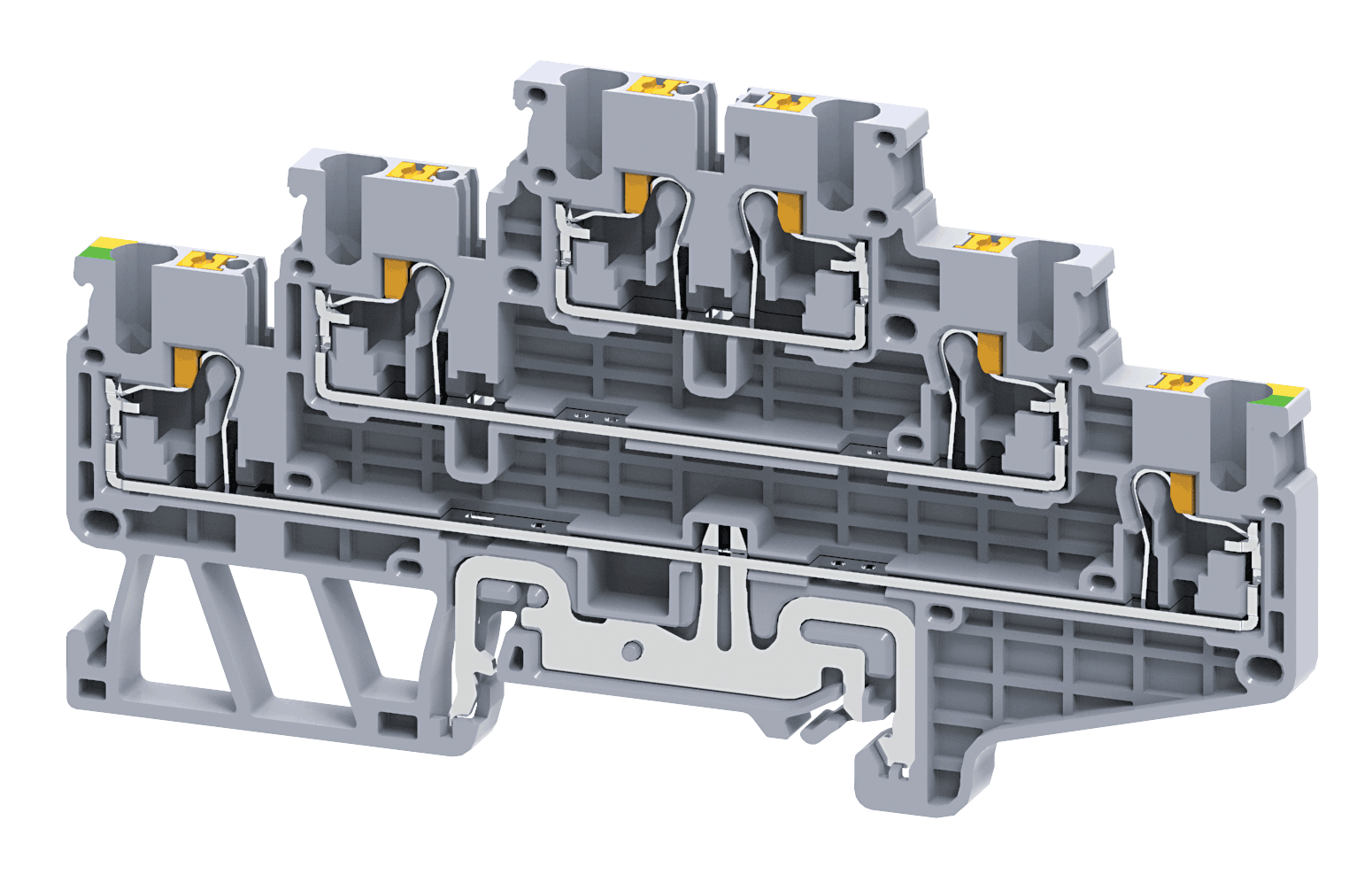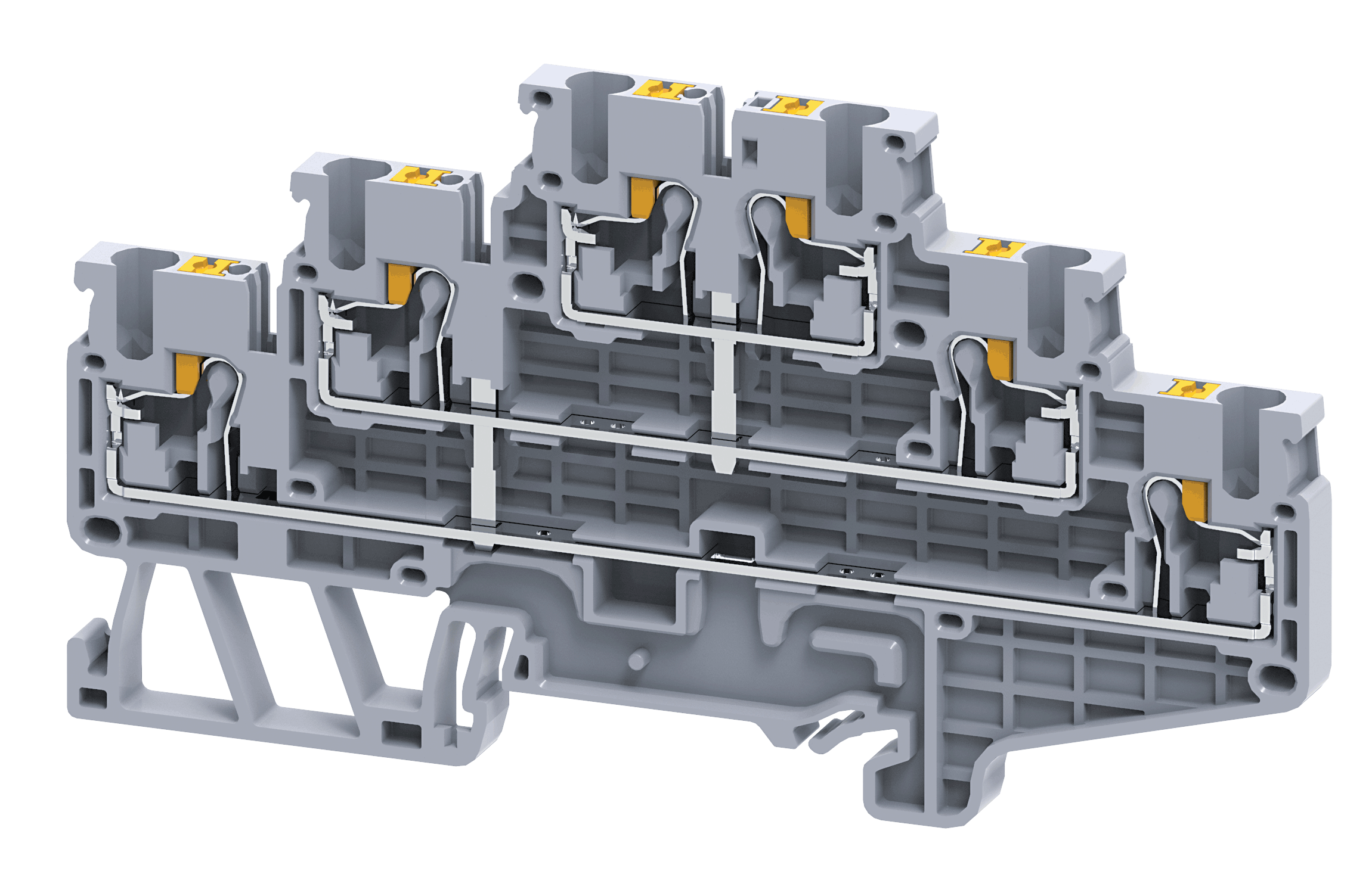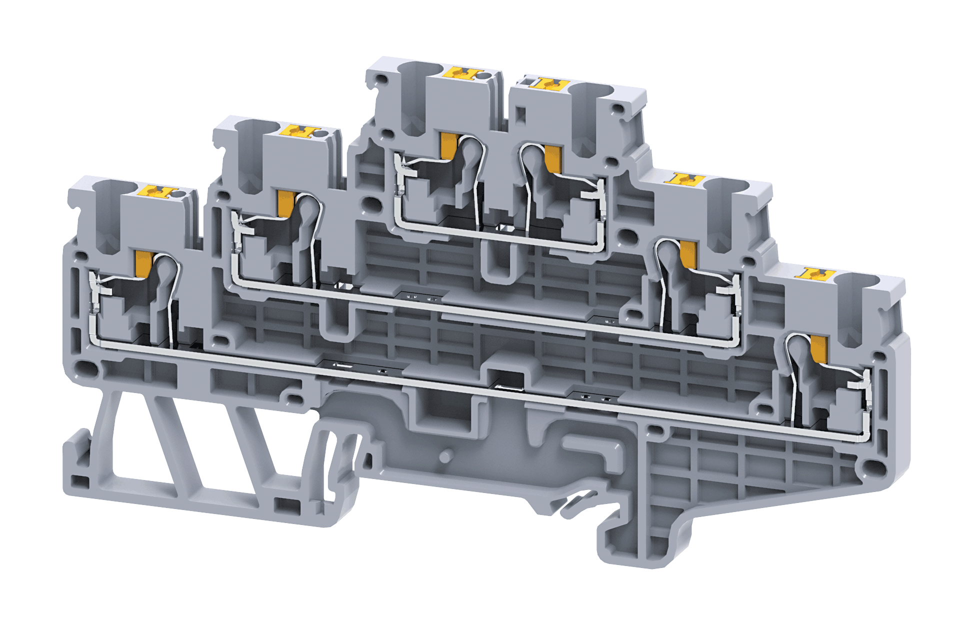 2.5 sq.mm Three Level, Internally Shorted, Push in Terminal Block