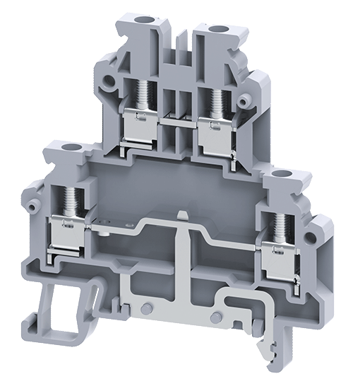 Stackable 4 sq.mm Offset Double Level Terminal Blocks.