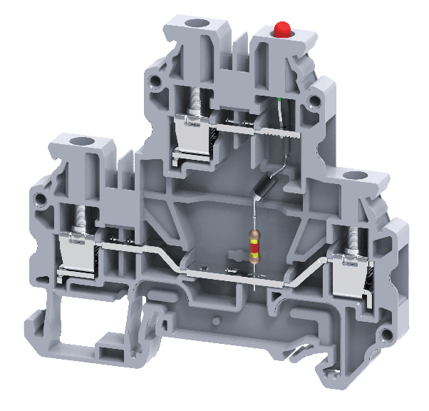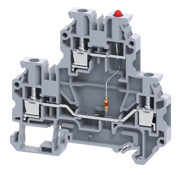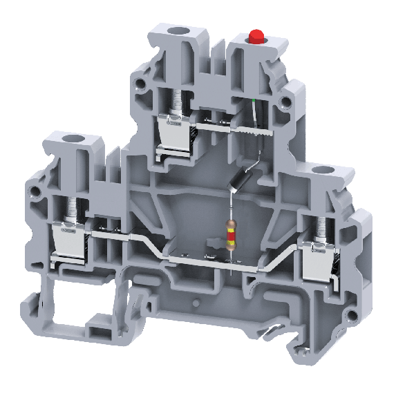 • Double Level Terminal Block are available with DC voltage indicator with LED.